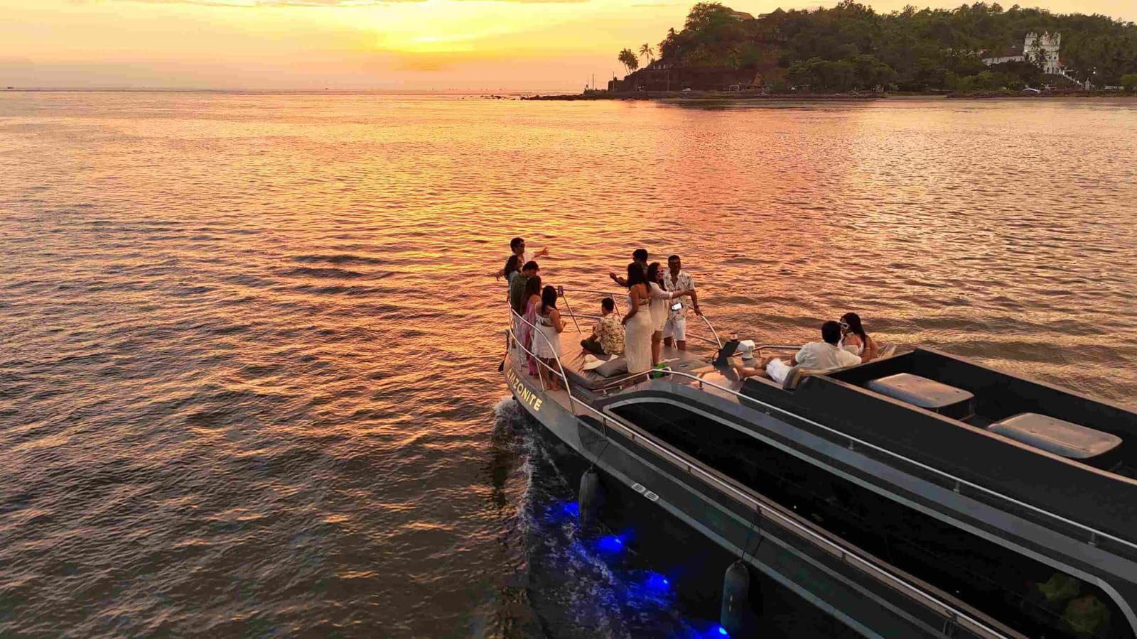 Experience a luxury private yacht cruise in Goa aboard the Amzonite Luxury Yacht. Enjoy a 2-hour sailing experience with stunning views of Sethu Bridge, Adil Shah Palace, Fort Aguada, Aguada Lighthouse, Caranzalem Beach, Raj Bhavan, and Reis Magos Fort. Relax in the AC lounge, sundeck, and bedroom while spotting dolphins in the Arabian Sea. Perfect for couples, families, and groups looking for an unforgettable Goa yacht experience.