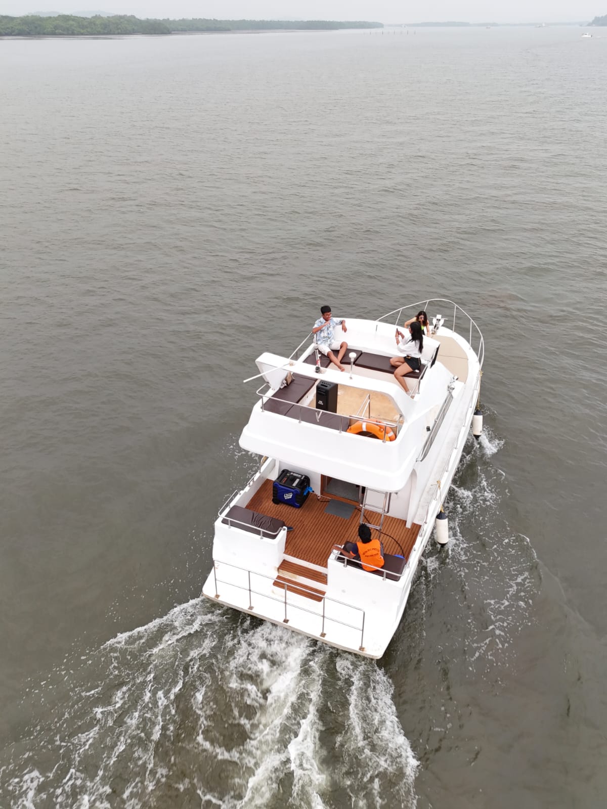 - 2 Hours Yacht Charter (1 Hour Sailing + 1 Hour Anchored) Professional Captain & Crew Fully Air-Conditioned Bedroom AC Indoor Lounge Area Spacious Sundeck Flybridge Seating Area Washroom Facility All Safety & Life-Saving Equipment On-board Complimentary Ice Drinking Water Soft Drinks