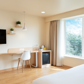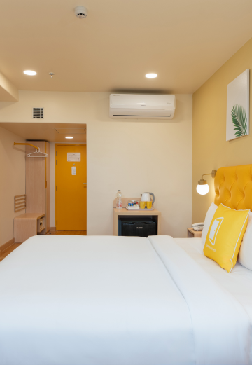 - Comfortable King / Twin Bed Air-conditioned room Free Wi-Fi access Smart TV Tea & Coffee maker Complimentary bottled water (daily) Attached private bathroom with toiletries 24-hour front desk assistance Daily housekeeping Free parking (subject to availability) Lift access (Breakfast included only if selected in the room plan.)