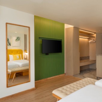 - ? Note: Breakfast is included only if booked under the CP (Breakfast Inclusive) Plan.Accommodation in Signature Suite One spacious King Size Bed Separate living area (subject to suite layout) Complimentary Wi-Fi access Air conditioning / Heating (as per season) Flat-screen TV with satellite channels Tea & coffee maker Complimentary bottled water (daily) Comfortable seating area / sofa Work desk and wardrobe space Attached private bathroom with shower Fresh towels