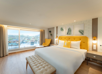 - ? Note: Breakfast is included only if booked under the CP (Breakfast Inclusive) Plan. Accommodation in Deluxe King Room One large King Size Bed 2+1 guests max Complimentary Wi-Fi access Air conditioning / Heating (as per season) Flat-screen TV with satellite channels Tea & coffee maker in room Complimentary bottled water (daily) In-room wardrobe and luggage space Attached private bathroom with shower Fresh towels and basic toiletries Daily housekeeping service 24-hour front desk assistance Free on-site parking (subject to availability).