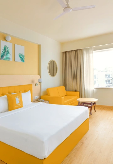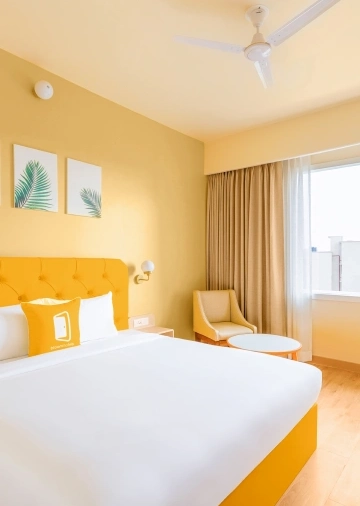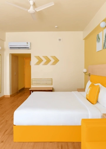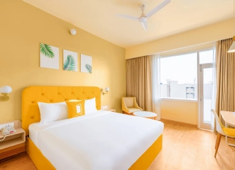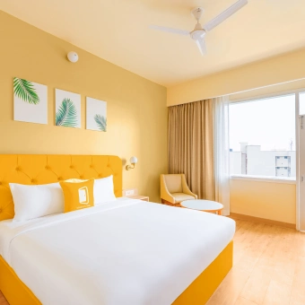 The hotel features modern, well-appointed rooms designed with Bloom’s signature vibrant interiors, ensuring a relaxing stay after a long journey. Each room is equipped with comfortable beds, air-conditioning, high-speed Wi-Fi, flat-screen TV, tea/coffee maker, and a private bathroom with essential toiletries.
