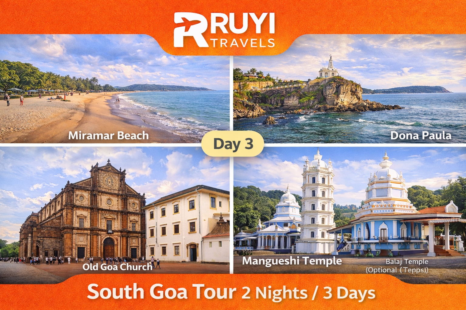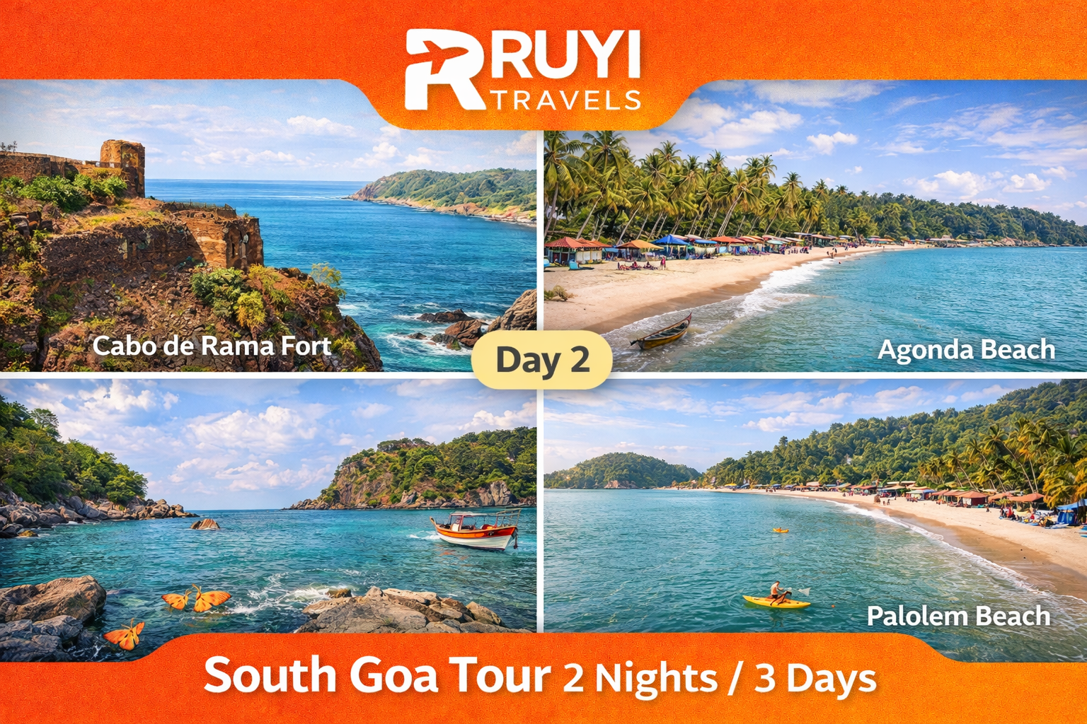 Experience the untouched beauty of South Goa with pristine beaches, historic forts, and peaceful coastal vibes. This package is perfect for travelers who want to explore Goa’s quieter and more scenic side, away from crowded tourist spots. Enjoy private transfers, comfortable accommodation, and guided sightseeing covering Goa’s most beautiful beaches and cultural landmarks.
